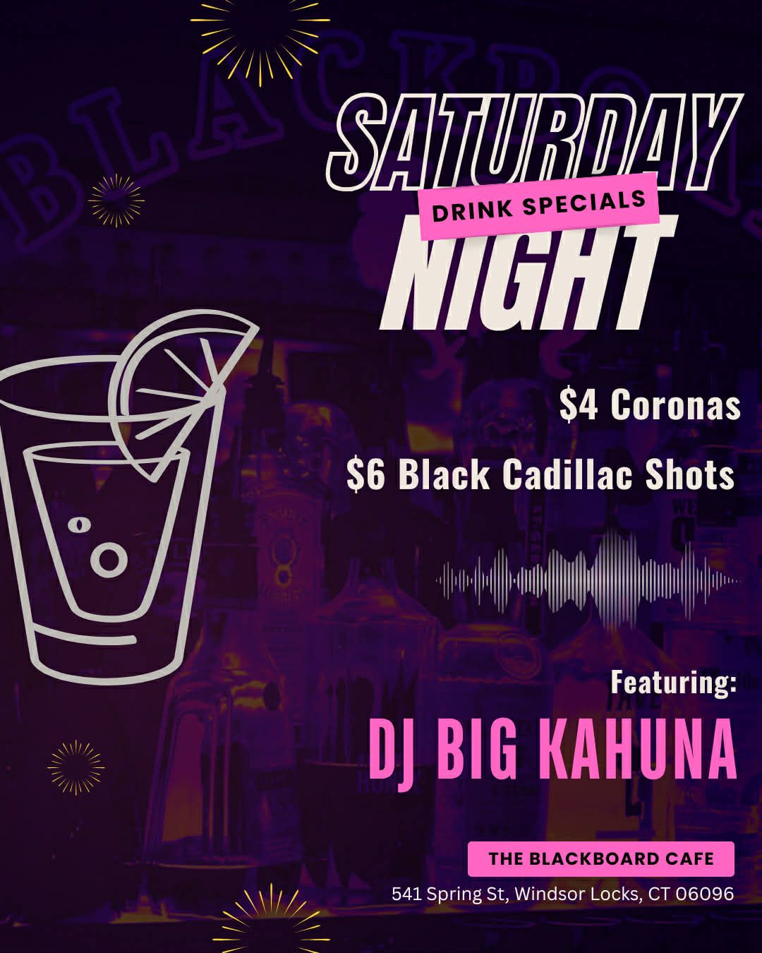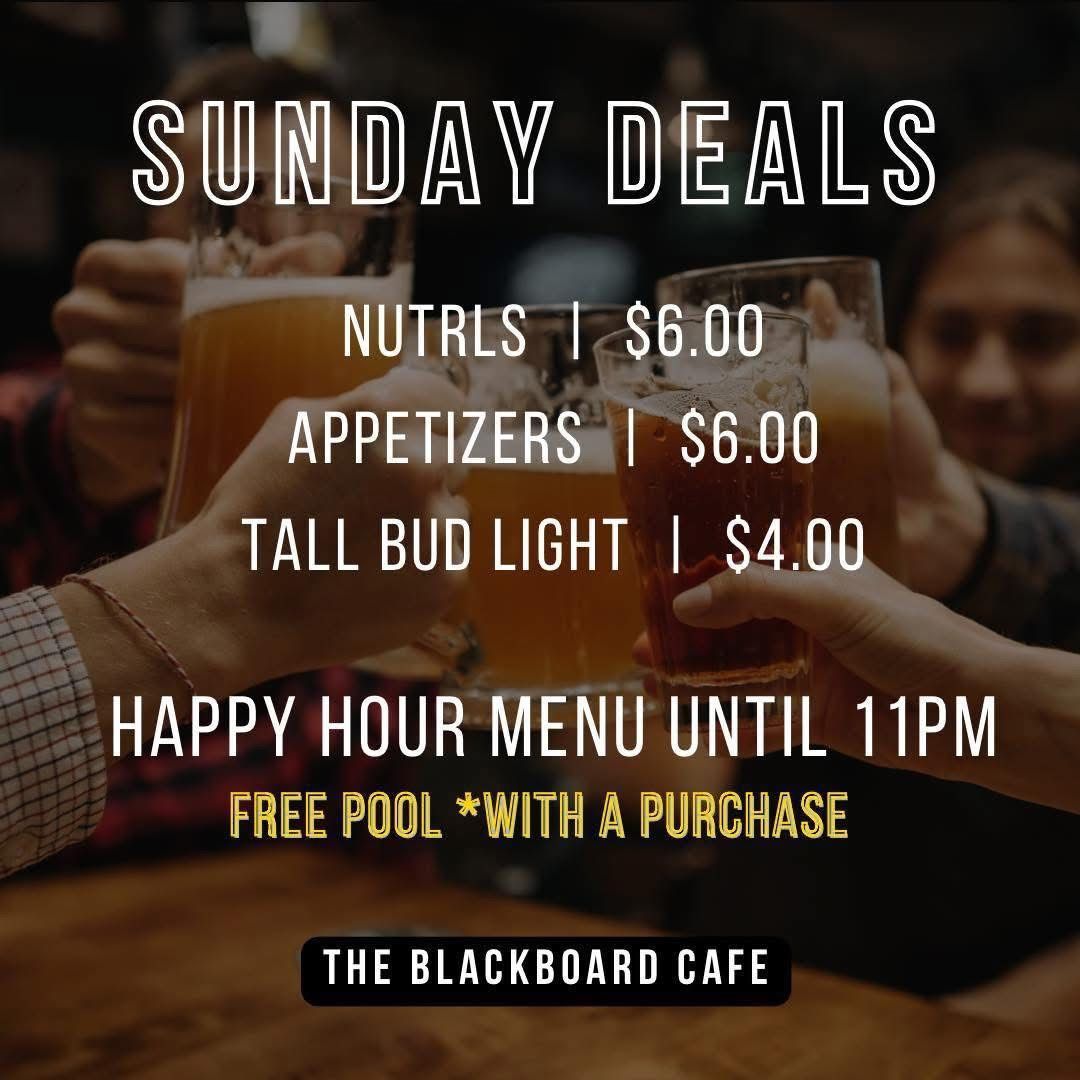 No matter what day of the week it is, you can come into The Blackboard Cafe and find great deals! Join us for drinks: domestic draughts, bottles, and house wines. Join us for food: appetizers and daily lunch specials. We accept catering orders. Buffets are available on request. Call us